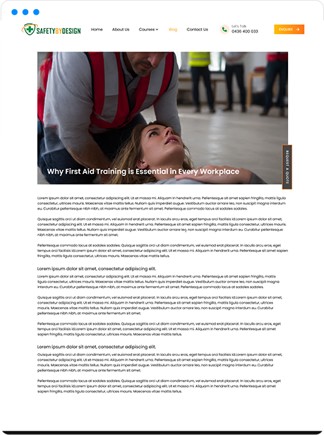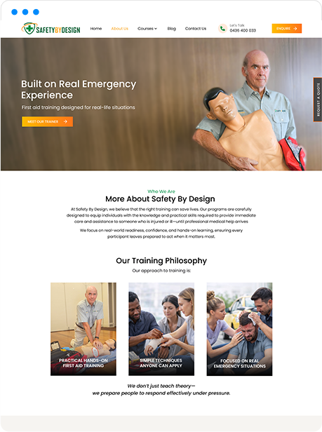 At Safety By Design, we believe that the right training can save lives. Our programs are carefully designed to equip individuals with the knowledge and practical skills required to provide immediate care and assistance to someone who is injured or ill—until professional medical help arrives